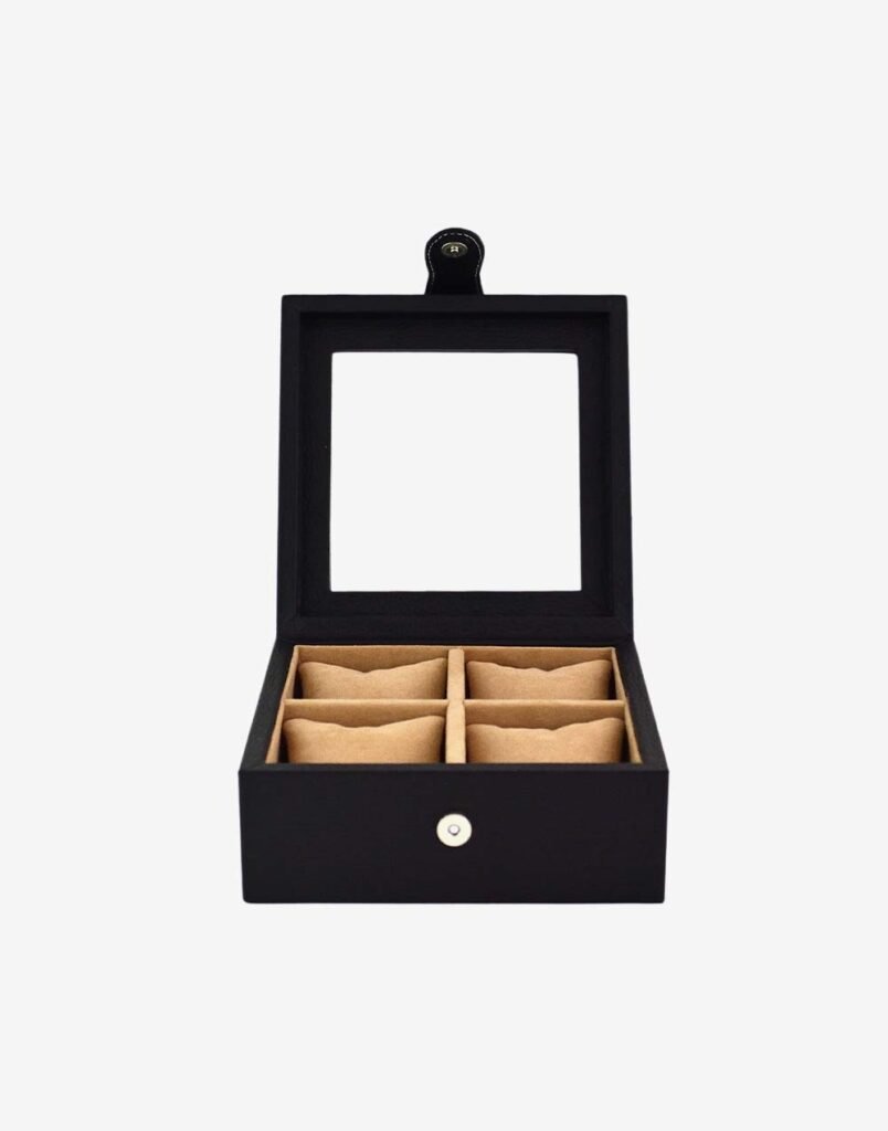 Protege y organiza tus relojes con estilo con esta caja con capacidad de almacenamiento de 4 piezas.