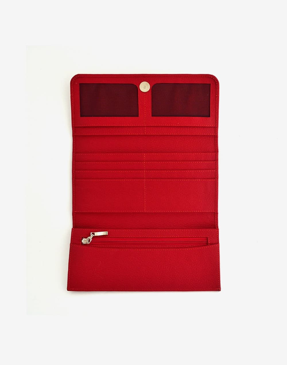 Compartimento amplio para monedas, billetes y para 13 tarjetas y/o credenciales.