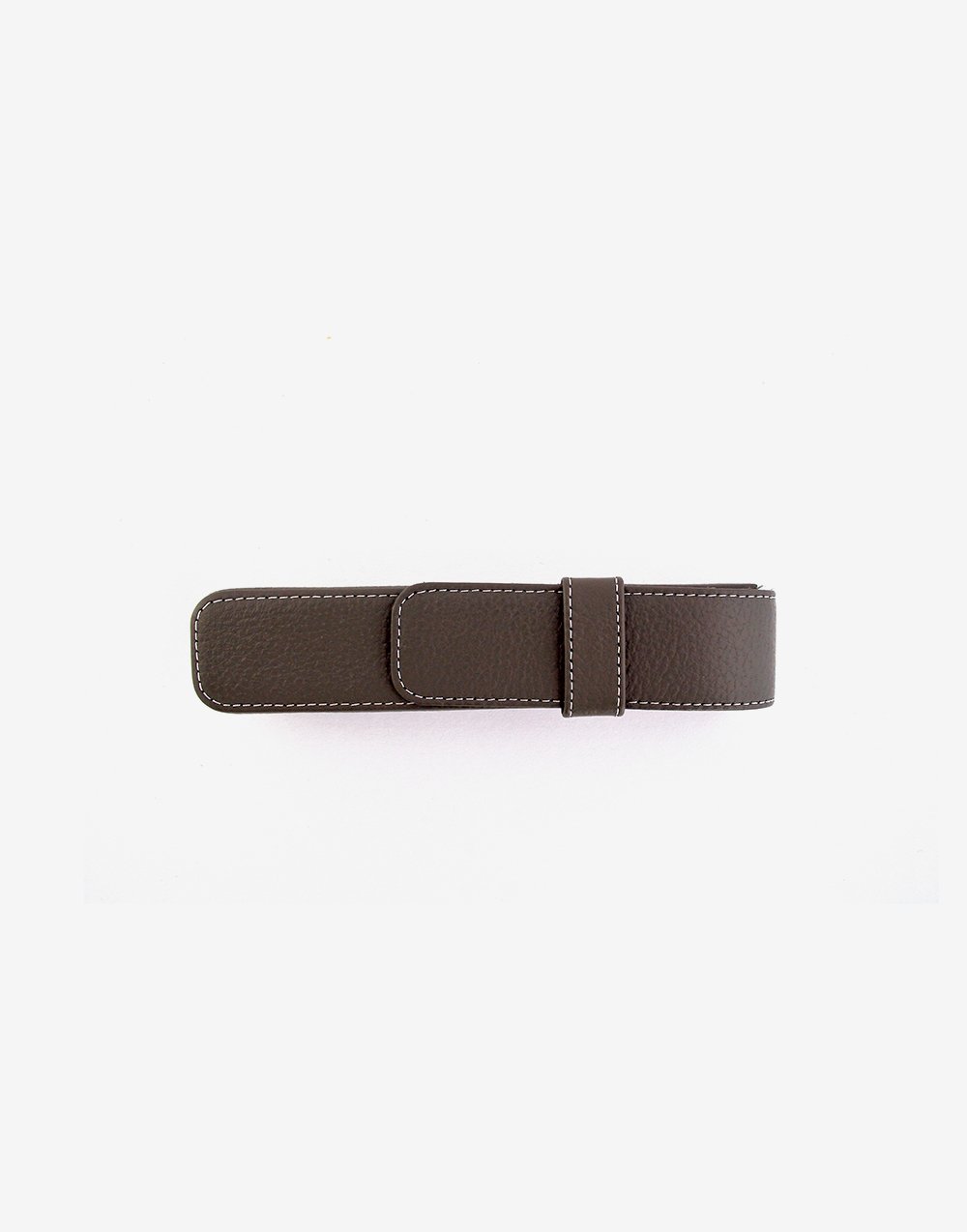 Estuche rígido y compacto para transportar un bolígrafo en portafolio o bolsa.